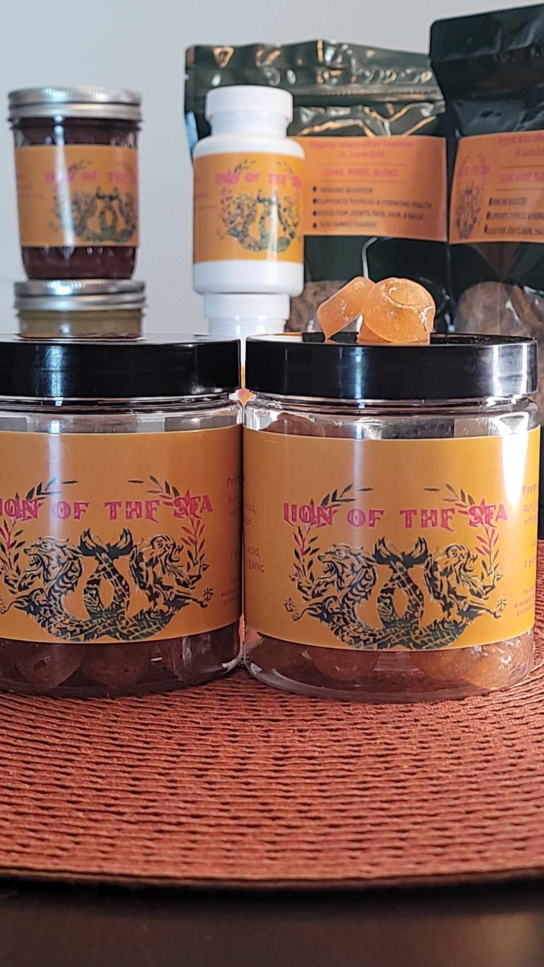 Energy-boosting Wildcrafted Sea Moss Gummies, Gel, Capsules, Raw, Sea Moss Lemonade, and also Herbal Teas to help with inflammation!